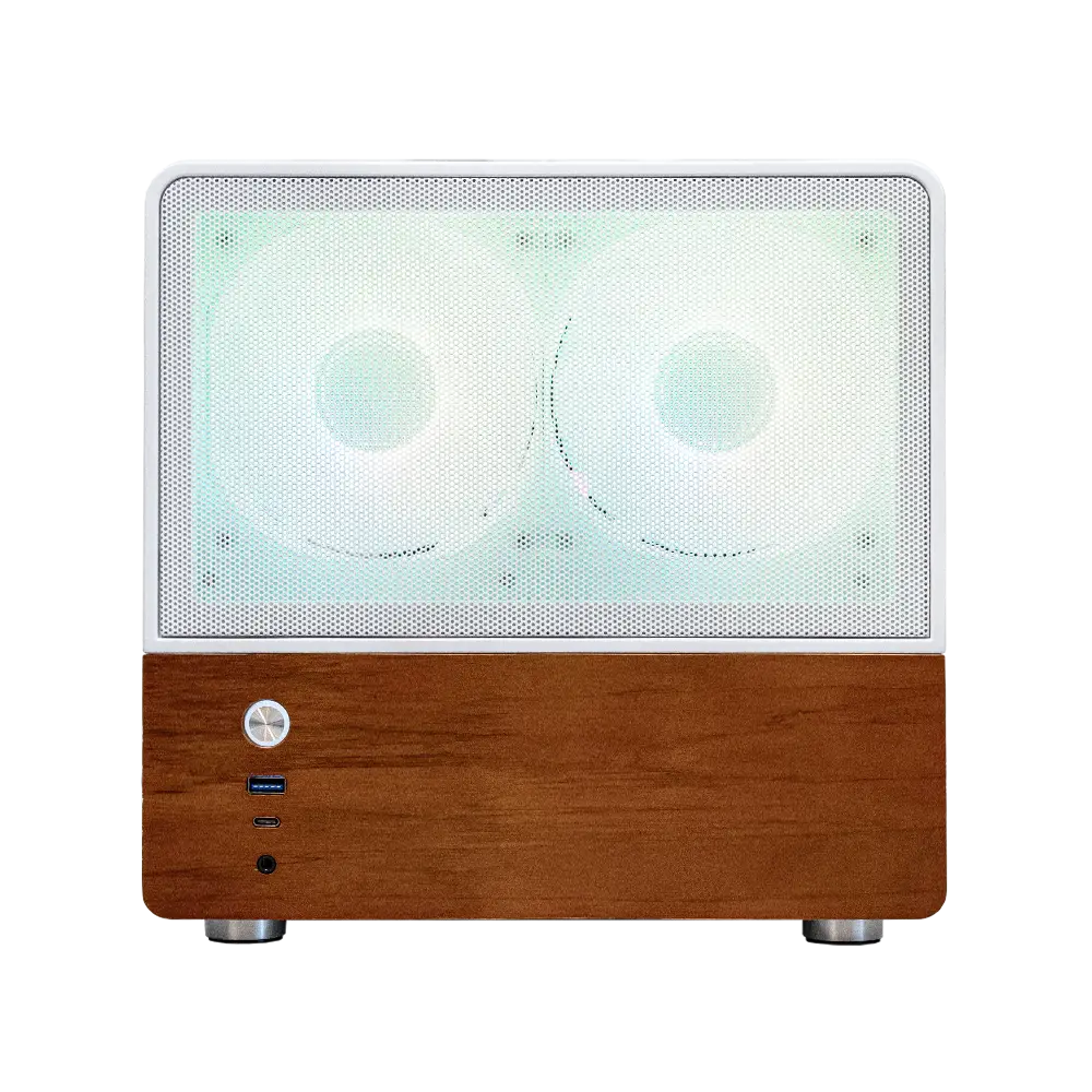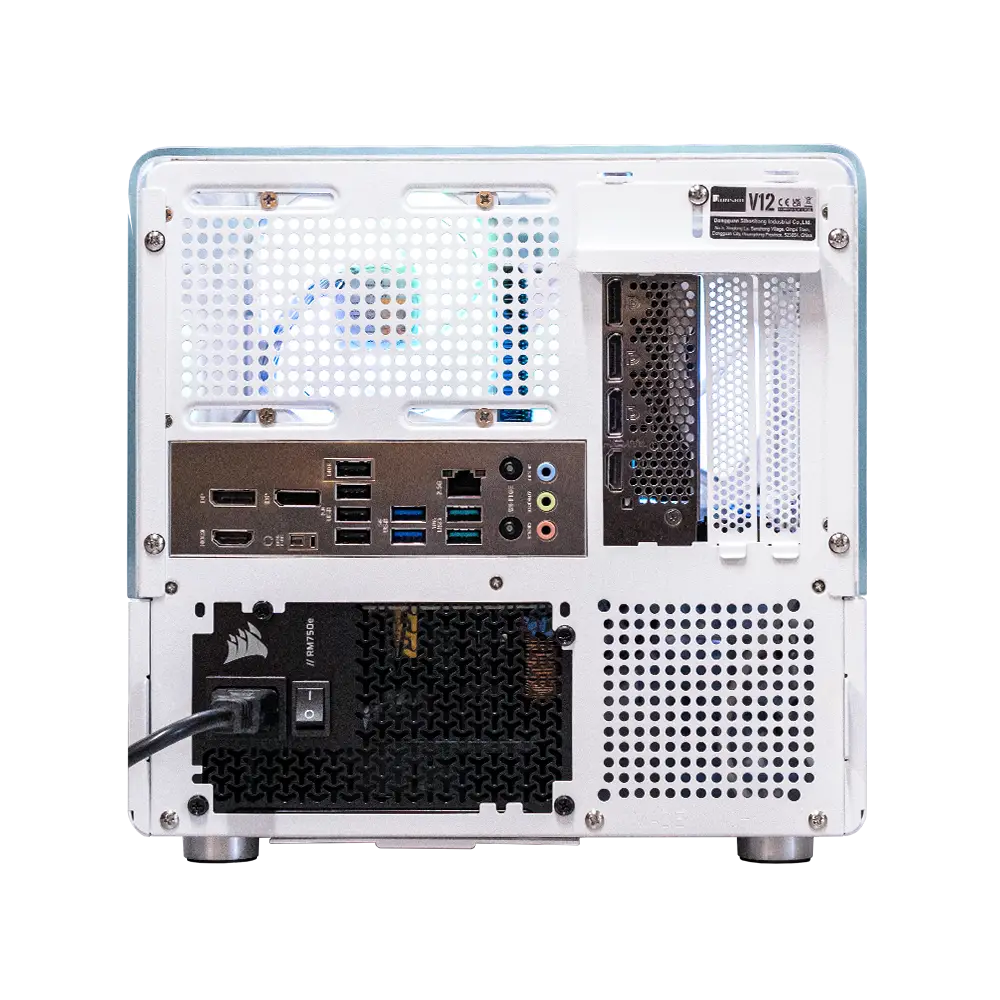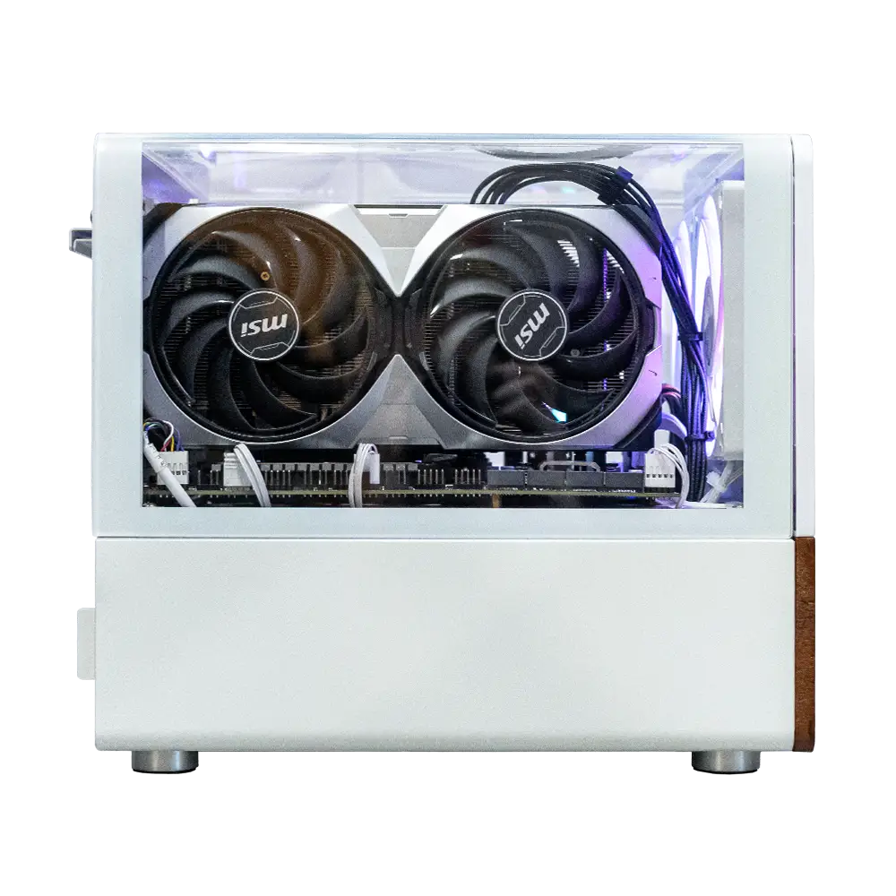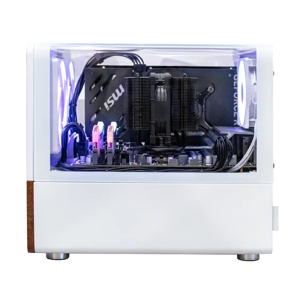Meet the Haven Ember Pro, a refined gaming and creative system designed to bring balance, warmth, and serious capability into your workspace. Housed in the elegant Jonsbo V12 panoramic mini-tower, this build pairs clean white aesthetics with natural accents and premium components, delivering smooth performance without overpowering your environment.